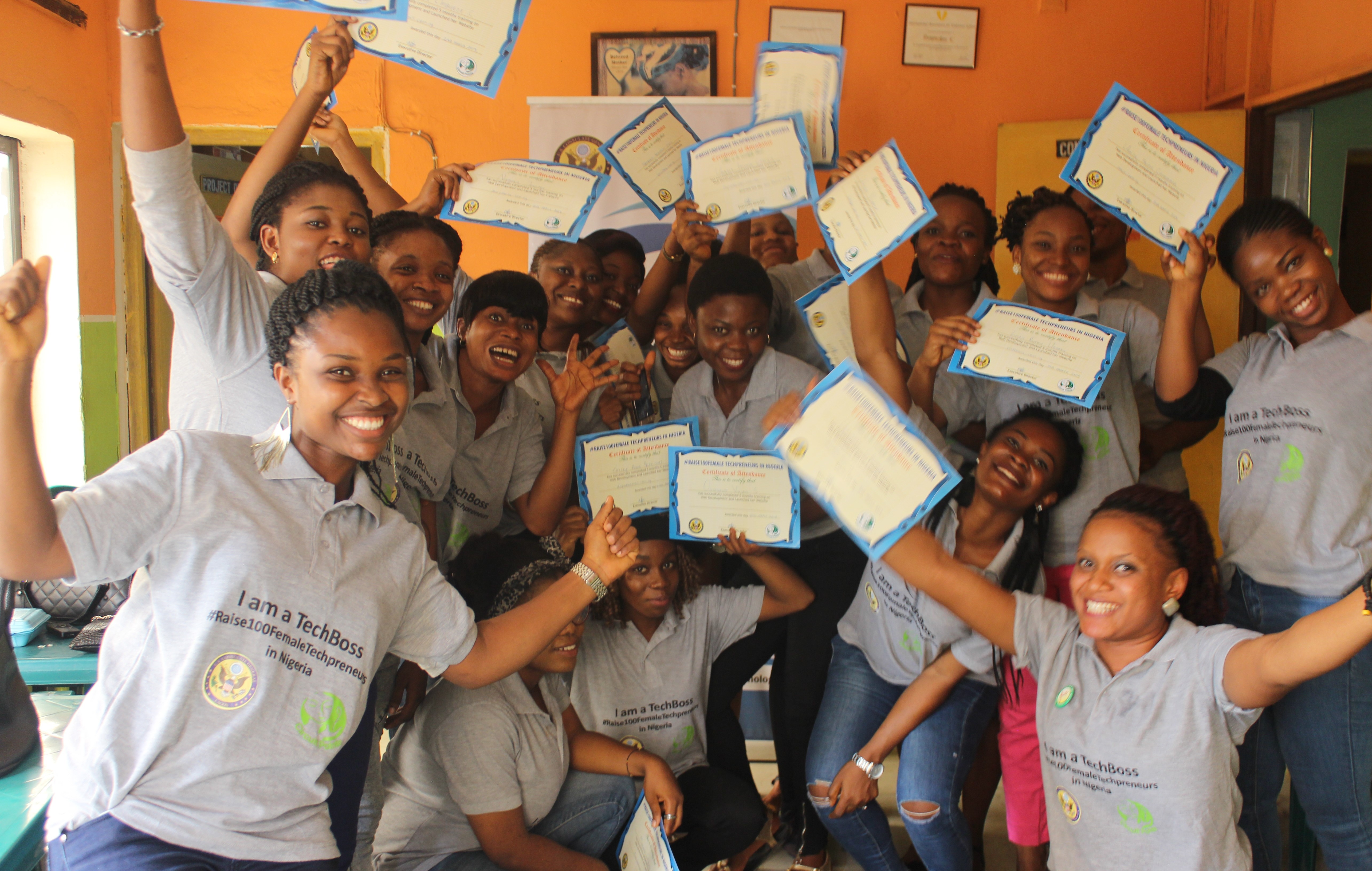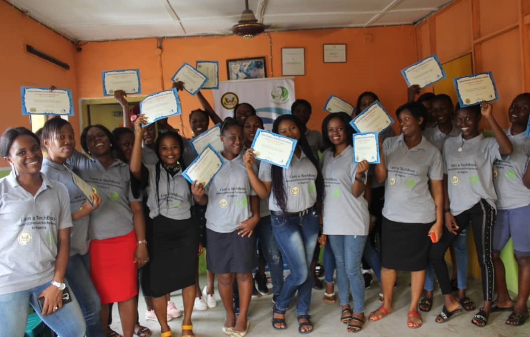 Thanks to U.S Consulate General Lagos, pilot phase of this program was successfully held in Imo State, Nigeria and 100 unemployed female graduates aged 19 – 35 years were empowered to become Technology Entrepreneurs through training and mentoring from basics to advanced programing, personal growth and entrepreneurial skills. Upon graduation, they were supported to register their Tech Start-ups online and launch their viable products/services developed.